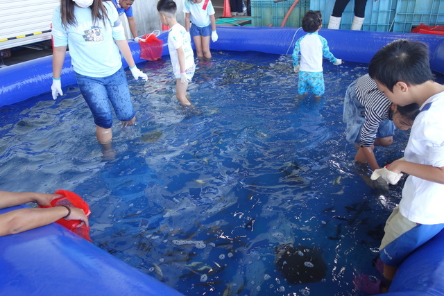 毎年、親子まつりで大好評のお魚つかみ獲り。