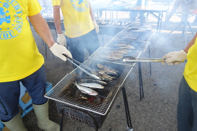 先着順でいわし塩焼き一匹無料配布。数に限りがあるため、なくなり次第終了となります。